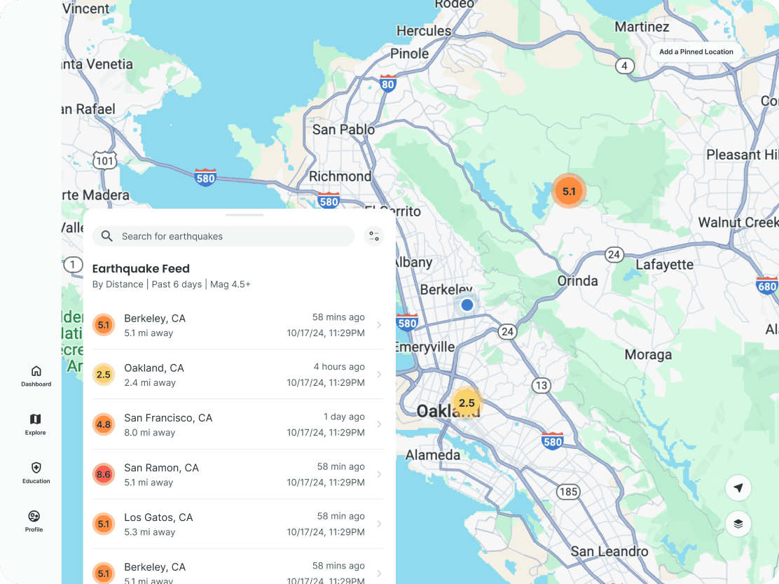 MyShake is now a comprehensive earthquake app that targets all critical information on your dashboard. Pinned locations will be at the top where user can easily view loved one's nearby earthquakes.